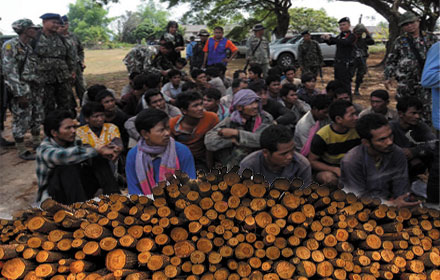 ทหาร ตำรวจและป่าไม้สนธิกำลังเข้าจับกุมขบวนการมอดไม้เมือเดือนเม.ย.55