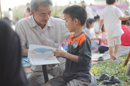 อีกครอบครัวหนึ่งก็มากันอย่างพร้อมหน้าพร้อมตา พ่อแม่และลูกสาว 2 คน ลูกสาวคนโตวัย 8 ขวบ คนเล็กวัย 5 ขวบ คุณแม่กิตติยา ใจดีรัศมี เล่าให้เราฟังด้วยสีหน้าปลื้มใจว่า “เมื่อก่อนพ่อแม่เป็นคนเล่านิทานให้ลูกฟัง หลายครั้งที่ใช้จินตนาการของตัวเองแต่งเนื้อเรื่องขึ้นมาให้ตรงกับหนังสือภาพ แล้วทำเสียงเล็กเสียงน้อยเพื่อดึงความสนใจของลูก ตอนนี้ลูกสาวคนโตก็ทำหน้าที่แทนคุณแม่ โดยการเล่านิทานให้น้องฟัง ทำให้น้องรักหนังสือ ส่วนพี่ก็อ่านออกเสียงได้ถูกต้องชัดเจนตั้งแต่อยู่ ป.1แล้ว”
