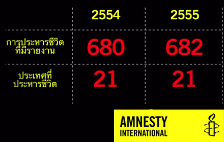 แอมเนสตี้ อินเตอร์เนชั่นแนล เปิดเผยรายงานสถานการณ์โทษประหารชีวิตและการประหารชีวิตในปี 2555 พบไทยเป็นหนึ่งใน 58 ประเทศทั่วโลกที่ยังคงใช้โทษประหารชีวิต ในขณะที่แนวโน้มทั่วโลกมุ่งสู่การยกเลิกโทษประหารชีวิต