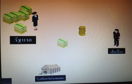 ผู้สื่อข่าวรายการว่า คลิปแอนิเมชั่นดังกล่าว เป็นภาคสองของคลิปที่พรรคประชาธิปัตย์ เคยนำมาเผยแพร่ไปแล้ว ช่วงเดือนธันวาคม 2555 อธิบายขั้นตอนความไม่โปร่งใสในการระบายข้าวแบบรัฐต่อรัฐ หรือ จีทูจี ในโครงการจำนำข้าว รัฐบาล น.ส.ยิ่งลักษณ์ ชินวัตร นายกรัฐมนตรี ที่พรรคประชาธิปัตย์ นำไปอภิปรายไม่ไว้วางใจนายกรัฐมนตรี