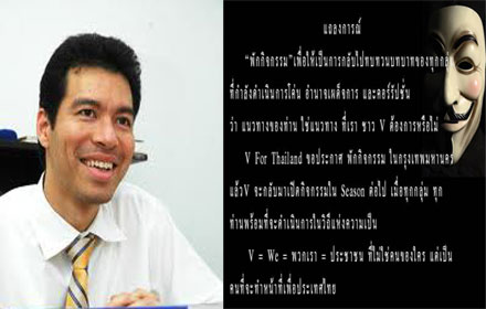 เรียกเสียงฮือฮา ได้ไม่น้อย เมื่อแฟนเพจ “ V For Thailand” ซึ่งเป็นช่องทางการสื่อสารหลักในการนัดกลุ่มคนหน้ากากขาวทำกิจกรรม ได้ประกาศ “พักกิจกรรม” ในกรุงเทพฯ เพื่อให้แต่ละกลุ่มไปทบทวนบทบาทของตัวเอง เมื่อวันที่ 2 กรกฎาคม 2556 ที่ผ่านมา