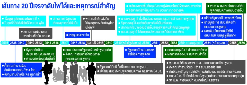 บรรยายภาพ : กราฟฟิกเส้นทาง 20 ปีเจรจาดับไฟใต้ สะท้อนความไม่คืบหน้าของการแก้ไขปัญหา