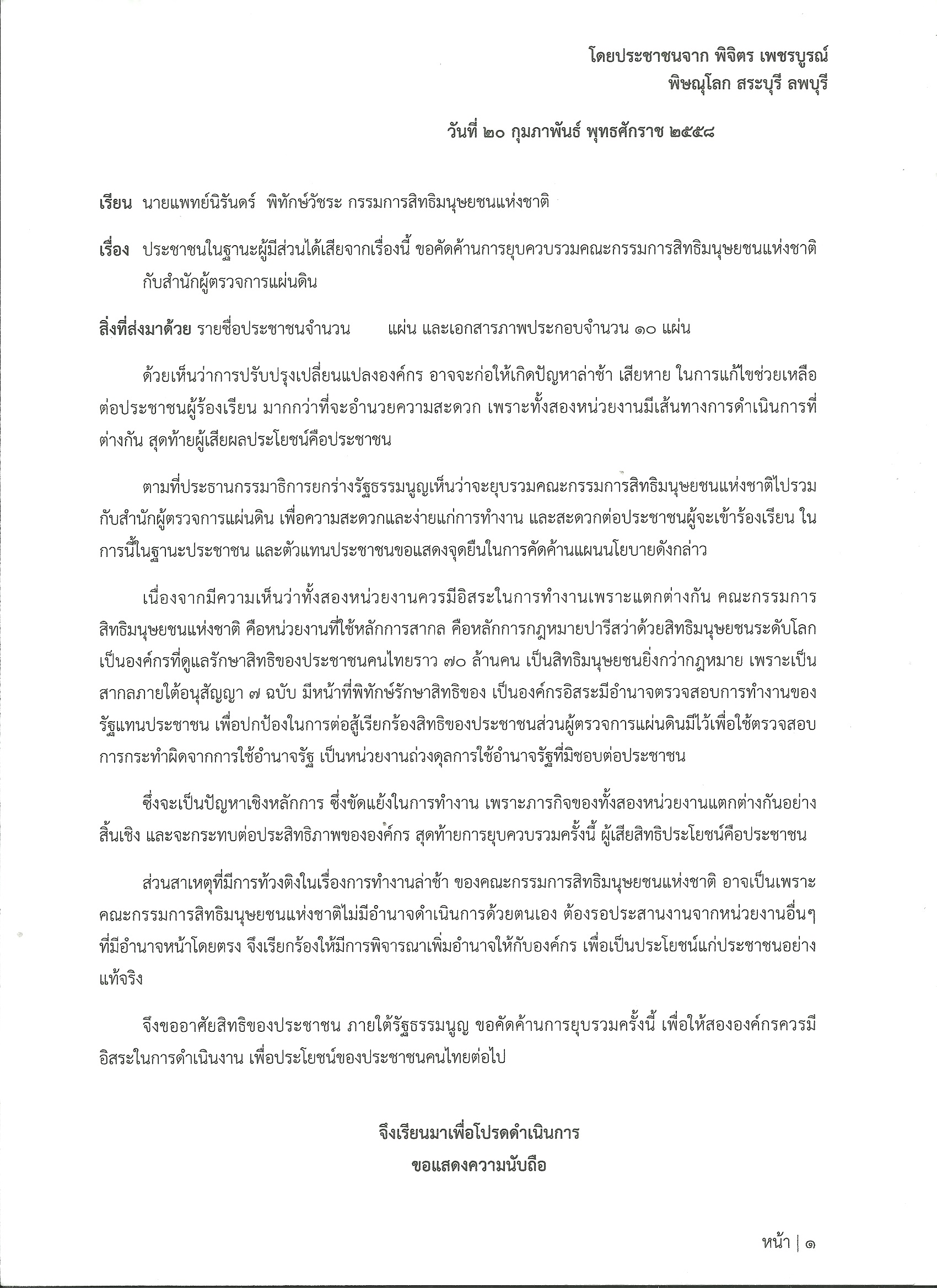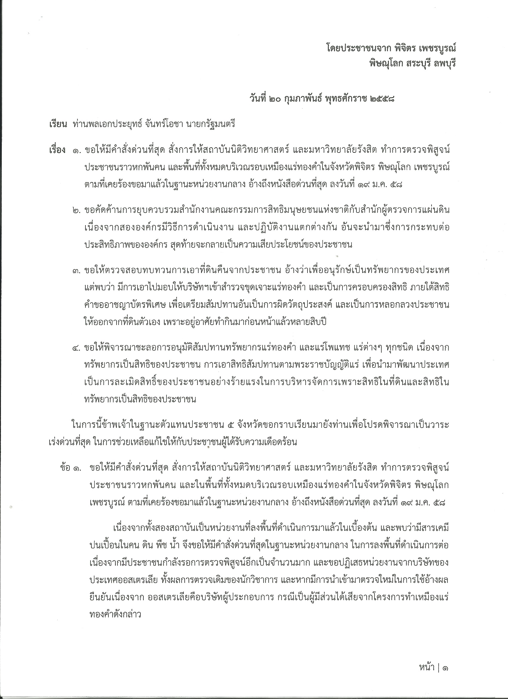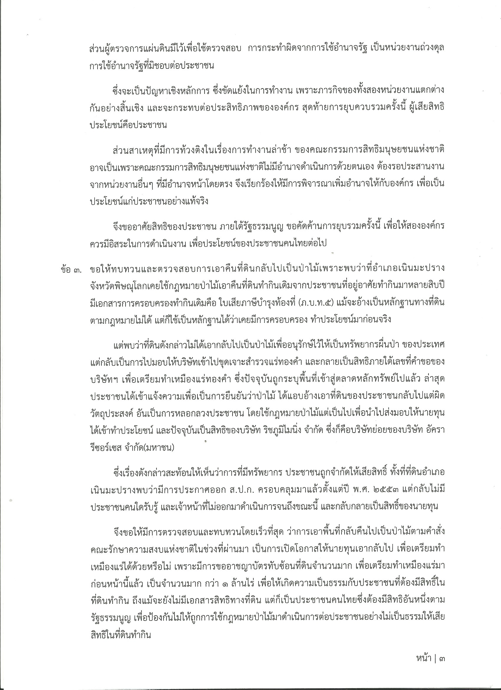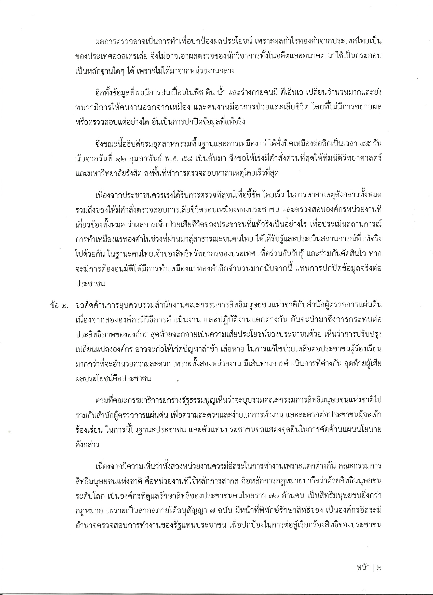 ปชช.5 จังหวัด ยื่นหนังสือคัดค้านควบรวม กสม.- หาเหตุคนป่วยรอบเหมืองทอง