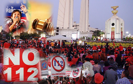 มีการประเมินว่า ปัจจัยเสี่ยงทางการเมืองที่จะเร่งให้เกิดการเผชิญหน้าแรงขึ้นในปี “งูใหญ่” 2555 คือ ความเคลื่อนไหวให้แก้ไขกฎหมายหมิ่นสถาบัน หรือประมวลกฎหมายอาญามาตรา 112 จากสถานการณ์การต่อสู้ที่เข้มข้น และมีการหมิ่นสถาบันมากขึ้นอย่างต่อเนื่อง พร้อมด้วยการลงโทษที่รุนแรง
