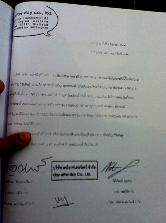 สำเนาหนังสือ บริษัท เดย์อาฟเตอร์เดย์ ฉบับที่ 2 ออกให้ ( ณ วันที่ 8 สิงหาคม 2554 )