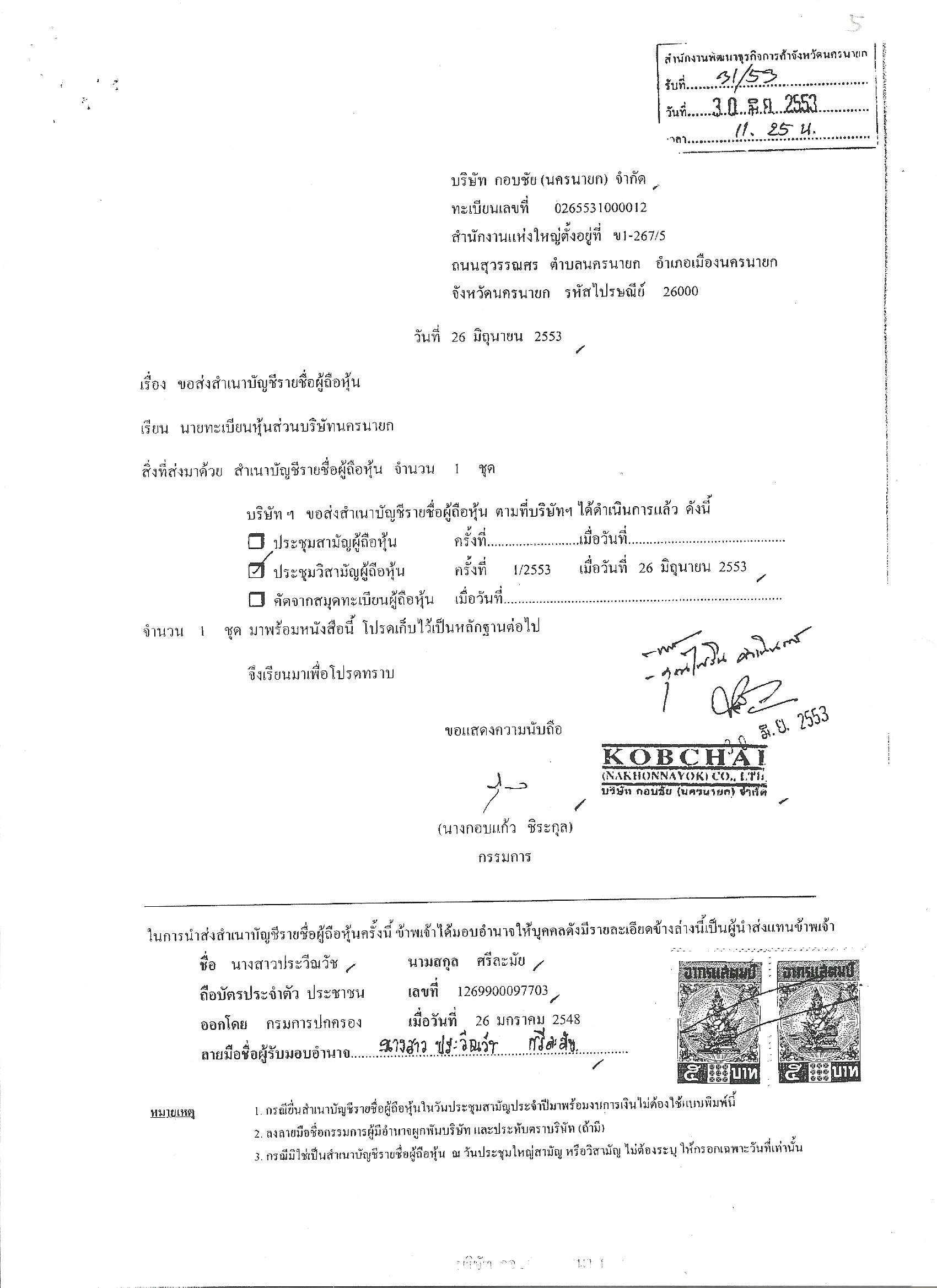 ผู้ถือหุ้น บริษัท กอบชัย (นครนายก) จำกัด