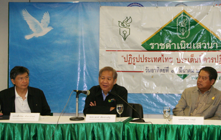 วันที่ 18 มีนาคม สมาคมนักข่าวนักหนังสือพิมพ์แห่งประเทศไทย ร่วมกับสถาบันอิศรา มูลนิธิพัฒนาสื่อมวลชนแห่งประเทศไทย และสำนักงานปฏิรูป (สปร.) จัดเสนาในกิจกรรม ราชดำเนินเสวนา "ปฏิรูปประเทศไทย ประเด็นที่ควรปฏิรูป?" โดยมี นายพงศ์โพยม วาภูติ ประธานคณะทำงานการปฏิรูประบบการเมือง รศ.ดร.ณรงค์ เพ็ชรประเสริฐ ประธานคณะทำงานปฏิรูประบบแรงงานและสวัสดิการ และอ.อิทธิพล ศรีเสาวลักษณ์ ประธานคณะทำงานปฏิรูปโครงสร้างและกฎหมายด้านที่ดิน ร่วมเสวนา