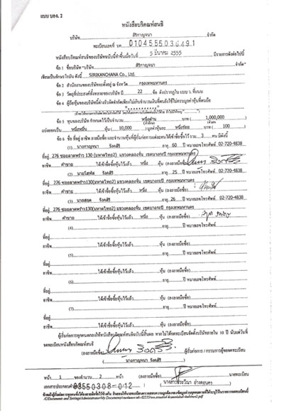 8.บริษัท สิริกาญจนา จำกัด จดทะเบียนวันที่ 8 มี.ค. 2555 ทุน 1 ล้านบาท ประกอบธุรกิจ ค้าขาย อสังหาริมทรัพย์ ให้เช่าและดำเนินการทางธุรกิจ ที่ตั้งเลขที่ 276 ซอยลาดพร้าว 130 ถนนลาดพร้าว แขวงคลองจั่น เขตบางกะปิ กรุงเทพฯ นางกาญจนา รังคสิริ ถือ 5,000 หุ้น นายโสฬส รังคสิริ และ นายสฤต รังคสิริ คนละ 2,500 หุ้น และเป็นกรรมการ