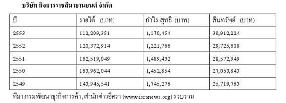 สำนักข่าวอิศรา (www.isranews.org) นำข้อมูล ผลประกอบการของบริษัท กิจการราชสีมายานยนต์ จำกัด กิจการเดินรถโดยสารของนางสุจินดา และกิจการเกี่ยวเนื่องมานำเสนอดังนี้