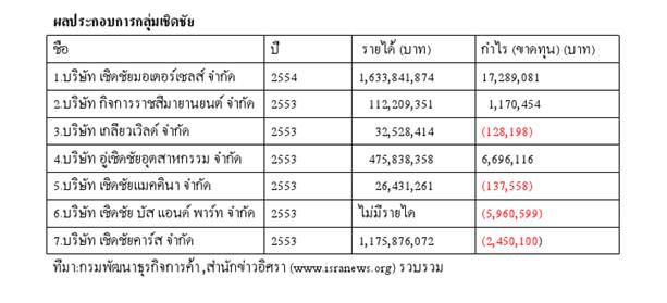 ผลประกอบการบริษัทอื่น ถ้าพิจารณาข้อมูลจากกรมพัฒนาธุรกิจการค้าพบว่า กิจการที่สร้างรายได้มากที่สุด ได้แก่