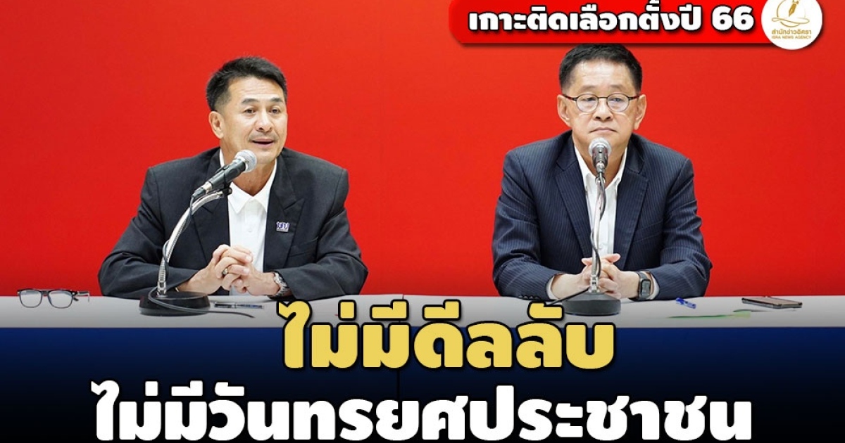 'ชลน่าน ศรีแก้ว' หัวหน้าพรรคเพื่อไทยยืนยัน ไม่มีดีลลับ-ไม่มีวันทรยศประชาชน ยึดมั่นตั้งรัฐบาลร่วม 8 พรรคให้สำเร็จ ด้าน 'ประเสริฐ จันทรรวงทอง' เผย 'ก้าวไกล' เป็นนายก ประธานสภาก็น่าจะเป็นของเพื่อไทย