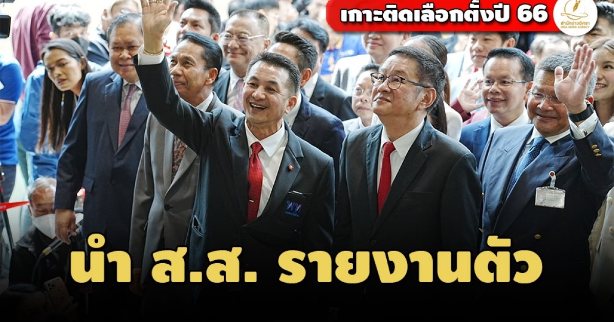'ชลน่าน ศรีแก้ว' นำส.ส.เพื่อไทยรายงานตัวที่รัฐสภา เผยตำแหน่งประธานสภา 2 ที่นั่งเป็นเพียงข้อเสนอ ยก 'ก้าวไกล' ตัดสินใจเอง ยัน ส.ส ไม่แตกแถวโหวตประธานสภา