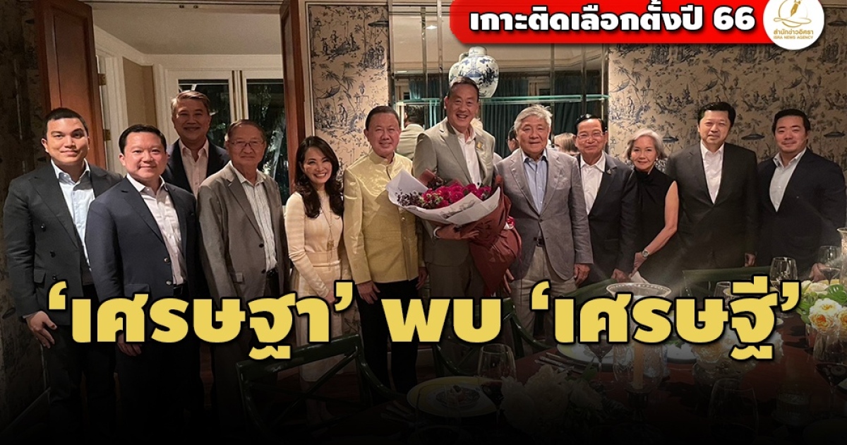 โดยในภาพดังกล่าวเป็นการถ่ายภาพร่วมกับนักธุรกิจระดับประเทศ โดยนายเศรษฐาพร้อมด้วยนพ.พรหมินทร์ เลิศสุริย์เดช ประธานคณะกรรมการด้านเศรษฐกิจและประธานคณะกรรมการนโยบาย พรรคเพื่อไทย และนายคณาพจน์ โจมฤทธิ์ อดีตกรรมการบริหารพรรคไทยรักษาชาติในฐานะทีมงานของนางสาวแพทองธาร ชินวัตร หัวหน้าครอบครัวเพื่อไทยและแคนดิเดตนายกรัฐมนตรี พบปะนักธุรกิจชื่อดังระดับประเทศ ได้แก่ นายศุภชัย เจียรวนนท์ รองประธานอาวุโสและประธานคณะผู้บริหาร บมจ. เครือเจริญโภคภัณฑ์ (CP) , นายอัยยวัฒน์ ศรีวัฒนประภา ประธานเจ้าหน้าที่บริหารกลุ่มคิงเพาเวอร์, นายวิชิต สุรพงษ์ชัย ประธานกรรมการ บมจ.เอสซีบี เอกซ์และกรรมการ บมจ.ธนาคารไทยพาณิชย์, นายอาทิตย์ นันทวิทยา ประธานเจ้าหน้าที่บริหาร บมจ. เอสซีบี เอกซ์, นายฐาปน สิริวัฒนภักดี กรรมการผู้อำนวยการใหญ่ บมจ. ไทยเบฟเวอเรจ, นายปลิว ตรีวิศวเวทย์ ประธานกรรมการ และกรรมการบริหาร บมจ.ช.การช่าง, นายสนั่น อังอุบลกุล ประธานสภาหอการค้าแห่งประเทศไทย และนางสาวจรีพร จารุกรสกุล ประธานกรรมการบริหารและประธานเจ้าหน้าที่บริหารกลุ่มบมจ.ดับบลิวเอชเอ คอร์ปอเรชั่น