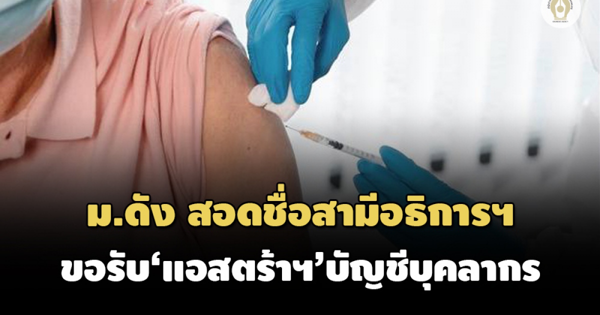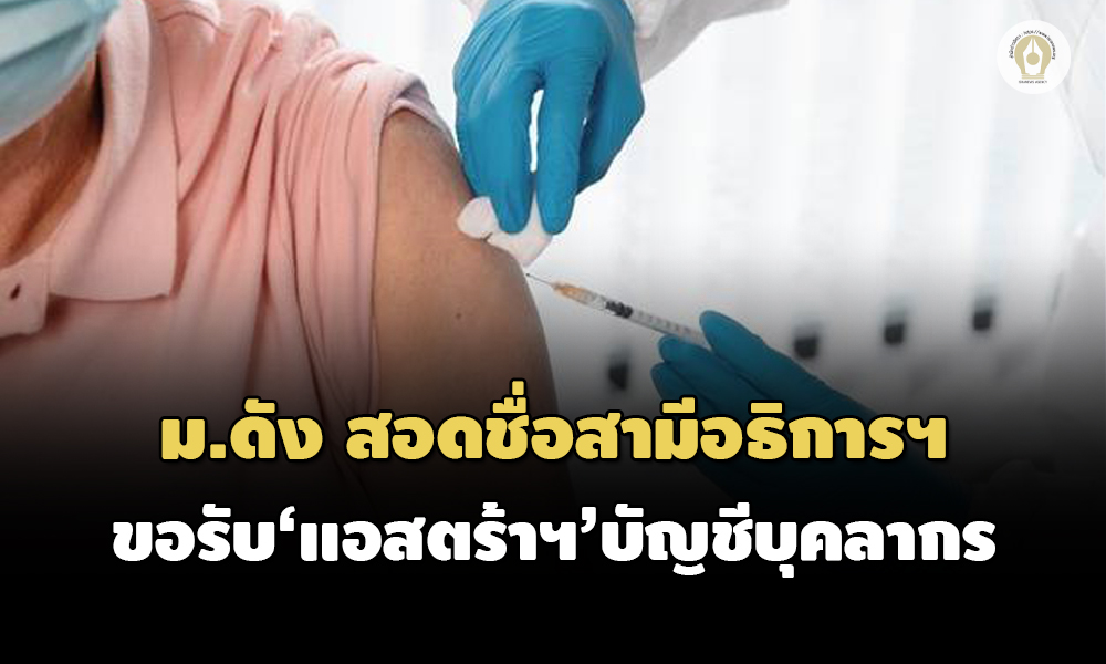 ร้อง ‘อิศรา’ มหาวิทยาลัยดังสอดชื่อสามีอธิการบดี เข้าบัญชีขอรับการฉีดวัคซีนแอสตร้าเซนเนก้าเข็มแรกของบุคลากร พร้อมระบุตำแหน่งงานเป็นกองอำนวยการสอบ