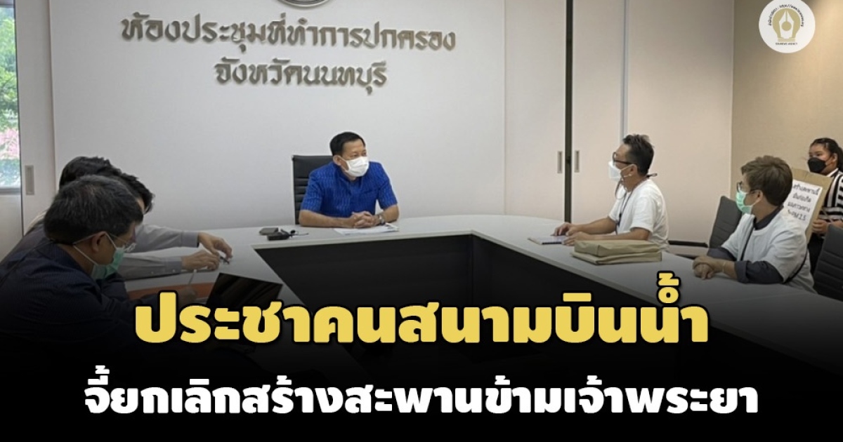 ประชาคมสนามบินน้ำยื่นหนังสือถึงผู้ว่าฯ นนทบุรี ค้านสร้างสะพานข้ามเจ้าพระยา อ้างใช้งบไม่คุ้มค่า-ก่อมลภาวะ กระทบคุณภาพชีวิต 500,000 คน