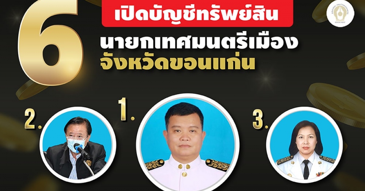 INFO : เปิดบัญชีทรัพย์สิน 6 นายกเทศมนตรีเมือง จ.ขอนแก่น- ‘ไพรัตน์ ทวีวาร’ มากสุด 54 ล.
