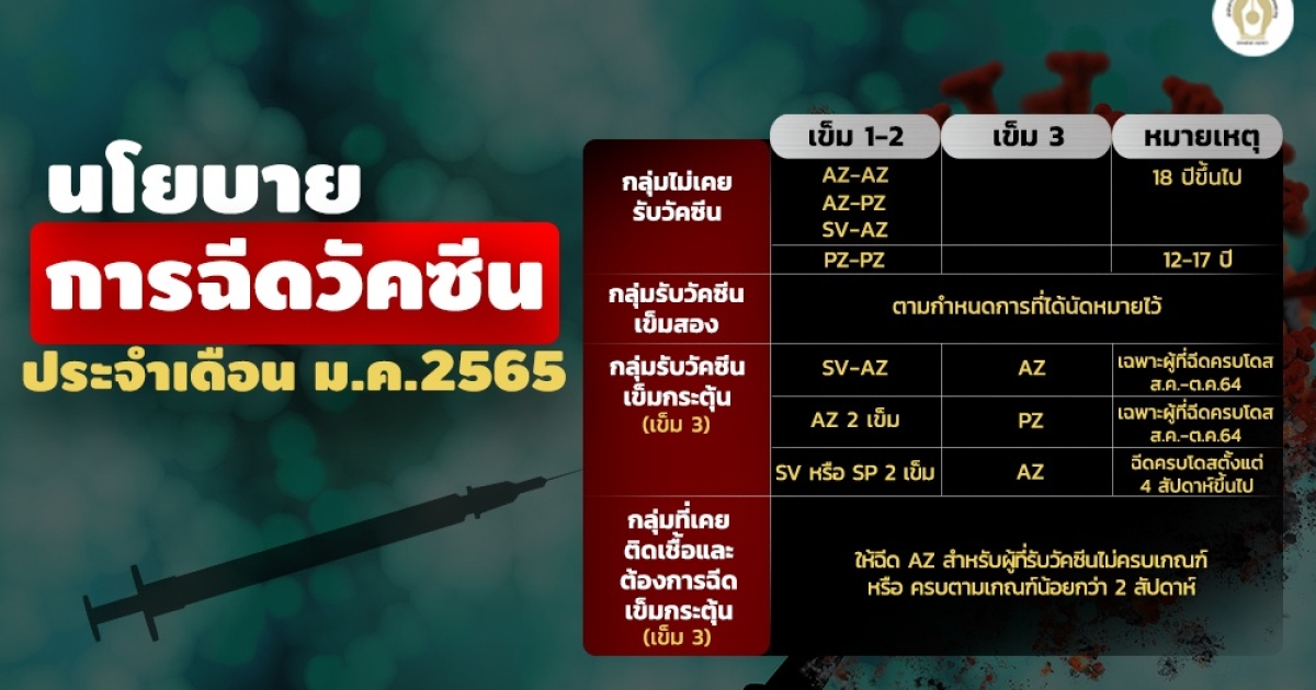 สธ.ไฟเขียวกลุ่มฉีดวัคซีนโควิด ครบ 2 เข็ม ส.ค.-ต.ค.64 เข้ารับเข็มกระตุ้น ม.ค.65 ใช้แอสตร้าฯ-ไฟเซอร์ เป็นหลัก