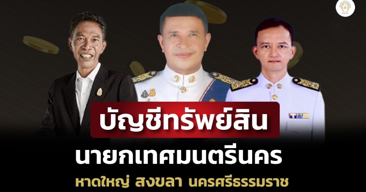 มาดูข้อมูลทรัพย์สินของนายกเทศมนตรีนครใน 3 จังหวัด หาดใหญ่ สงขลา นครศรีธรรมราช ทั้งรายที่พ้นตำแหน่งแล้วและรายรับตำแหน่ง ดังนี้