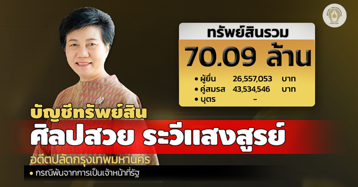 อ่านประกอบ : ทรัพย์สิน 70 ล.! ‘ศิลปสวย’ อดีตปลัด กทม. สามี ผอ.สำนักกรโยธาฯ เงินลงทุน 31.2 ล.
