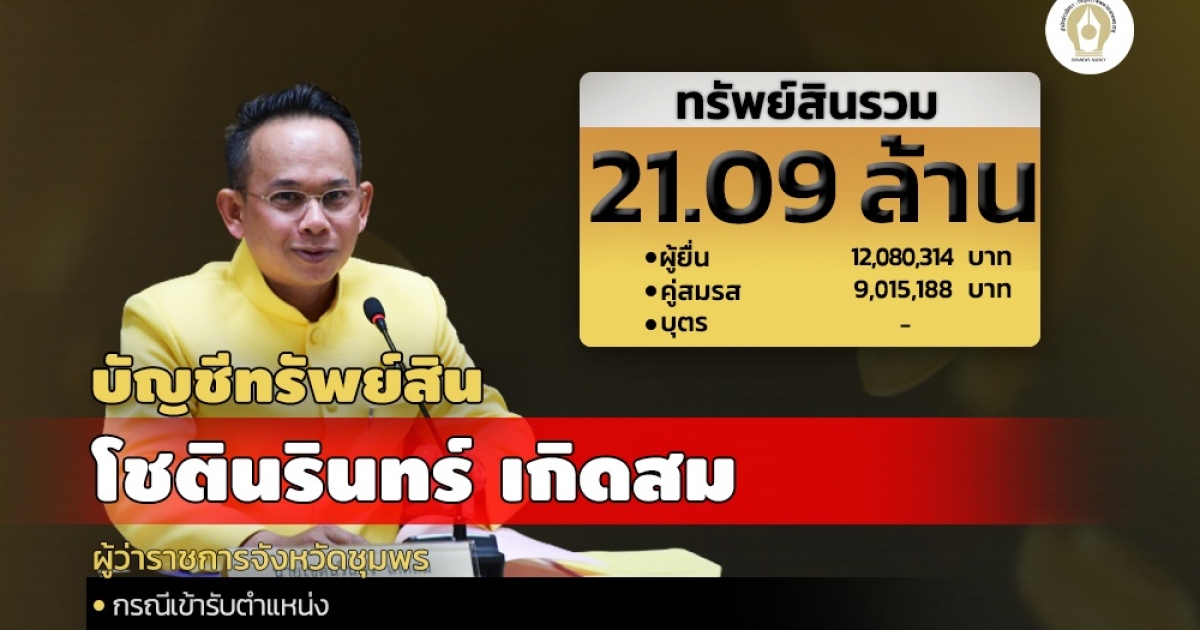 ทรัพย์สิน 21 ล.'โชตินรินทร์ เกิดสม'ผู้ว่าฯชุมพร ที่ดิน 16 แปลง 11 ล.