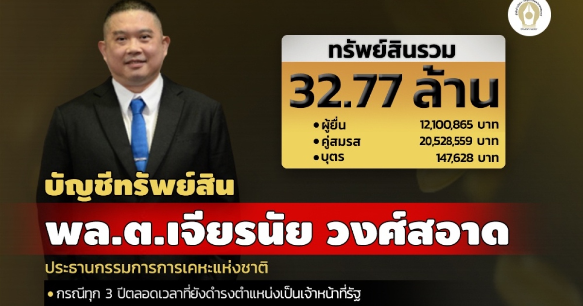 เมื่อวันที่ 12 พ.ค.2565 สำนักงานคณะกรรมการป้องกันและปราบปรามการทุจริตแห่งชาติ (ป.ป.ช.) เปิดเผยบัญชีทรัพย์สินและหนี้สินและเอกสารประกอบของผู้ดำรงตำแหน่งระดับสูง รายของ พล.ต.เจียรนัย วงศ์สอาด ประธานกรรมการการเคหะแห่งชาติ และ ข้าราชการทหารในตำแหน่งผู้ทรงคุณวุฒิสำนักงานปลัดกระทรวงกลาโหม กรณีทุก 3 ปีตลอดเวลาที่ยังดำรงตำแหน่งเป็นเจ้าหน้าที่รัฐ เมื่อวันที่ 12 ก.พ.2562