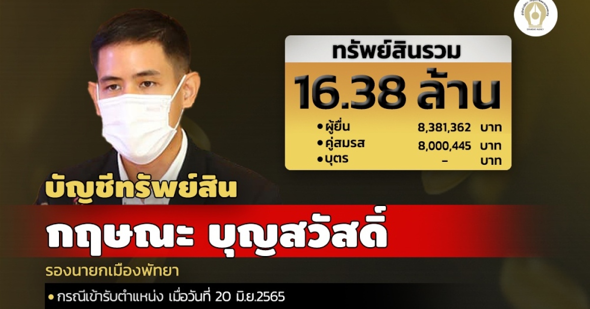 ทรัพย์สิน 16.38 ล้านบาท 'กฤษณะ บุญสวัสดิ์' นั่งรองนายกเมืองพัทยา เงินฝาก 19 บัญชี 6.45 ล้านบาท สะสมปืน 4 กระบอก นาฬิกา 3 เรือน ภรรยามีกระเป๋าหรู 7 ใบ 1.45 ล้านบาท