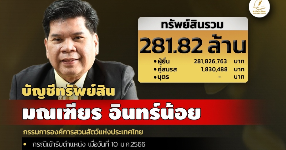 สำนักงานคณะกรรมการป้องกันและปราบปรามการทุจริตแห่งชาติ (ป.ป.ช.) เปิดเผยบัญชีแสดงทรัพย์สินและหนี้สินของ นายมณเฑียร อินทร์น้อย กรรมการองค์การสวนสัตว์แห่งประเทศไทย โดยแจ้งมีทรัพย์สินกว่า 281 ล. ลงทุนใน บมจ.มาสเตอร์ สไตล์ 226,367,187 บาท โรงเรือนและสิ่งปลูกสร้าง 25.09 ล. ทรัพย์สินที่น่าสนใจมอาทิ นาฬิกา 6 เรือน 4.42 ล. วัตถุมงคล 2 องค์