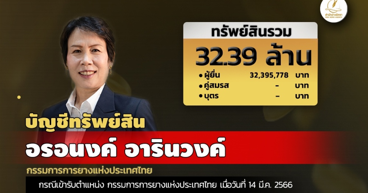 สำนักงานคณะกรรมการป้องกันและปราบปรามการทุจริตแห่งชาติ (ป.ป.ช.) เปิดเผยบัญชีแสดงทรัพย์สินและหนี้สินของ น.ส.อรอนงค์ อารินวงค์ กรรมการการยางแห่งประเทศไทย โดยแจ้งมี ทรัพย์สิน 32.39 ล. ประกอบด้วย เงินฝาก 8บัญชี มูลค่า 3.74 ล. ที่ดิน 13 แปลง มูลค่ารวม 20.70 ล. มีสวนยางด้วย ทรัพย์สินที่น่าสนใจแจ้งมี สร้อยคอทองคำ 6 เส้น แหวน 5 วง กำไลทองคำ 2 เส้น นาฬิกา 2 เรือน