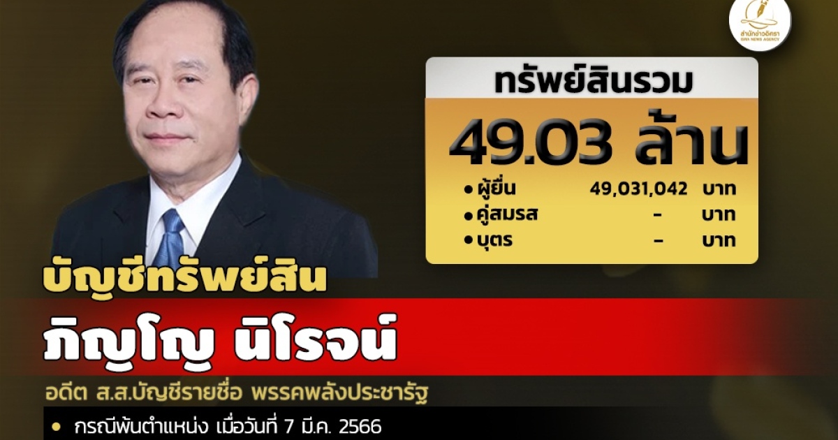 สำนักงานคณะกรรมการป้องกันและปราบปรามการทุจริตแห่งชาติ (ป.ป.ช.) เปิดเผยบัญชีแสดงทรัพย์สินและหนี้สินของ ภิญโญ นิโรจน์ อดีต ส.ส.บัญชีรายชื่อ พรรคพลังประชารัฐ โดยแจ้งมี ทรัพย์สิน 49.03 ล. ประกอบด้วย เงินสด มูลค่ารวม 2 แสนบาท ที่ดิน 2 แปลง มูลค่ารวม 29.16 ล. ที่น่าสนใจ อาวุธปืน 2 กระบอก พระบูชาสมัยต่างๆ 20 องค์ พระเบญจภาคี 16 องค์ และแจ้งมีรายได้ต่อปี 1.36 ล. จาก เงินเดือน
