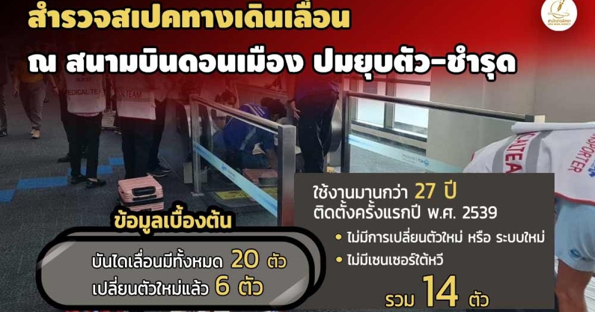 ..."ทางเลื่อนมีทั้งหมด 20 ตัว ติดตั้งมาตั้งแต่ปี 2539 ใช้งานมาแล้วประมาณ 27 ปี โดยในจำนวน 20 ตัวนี้ได้เปลี่ยนเป็นตัวใหม่แล้ว 6 ตัว ส่วนที่เหลืออีก 14 ตัว มีแผนทยอยเปลี่ยนใหม่ เดิมจะของบประมาณในปี 2568 แต่เนื่องจากเกิดเหตุการณ์ดังกล่าวขึ้น จะเร่งเปลี่ยนทางเลื่อนโดยจะของบประมาณเร่งด่วนเพิ่มเติมของปี 2567 มาดำเนินการ..."