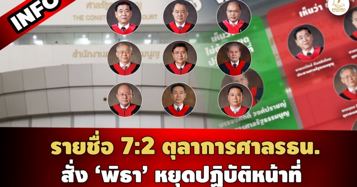 ศาลรัฐธรรมนูญ มีมติเสียงข้างมาก (7 ต่อ 2) สั่ง 'พิธา' หยุดปฏิบัติหน้าที่ ส.ส.ตั้งแต่ 19 ก.ค. 66 เป็นต้นไป จนกว่าจะมีคำวินิจฉัย หลังรับคำร้อง 'กกต.' คดีหุ้นไอทีวี