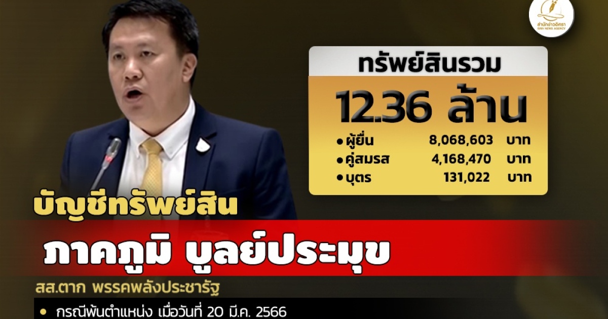 สำนักงานคณะกรรมการป้องกันและปราบปรามการทุจริตแห่งชาติ (ป.ป.ช.) เปิดเผยบัญชีแสดงทรัพย์สินและหนี้สินของ นายภาคภูมิ บูลย์ประมุข สส.ตาก พรรคพลังประชารัฐ ในสมัยรัฐบาล พล.อ.ประยุทธ์ จันทร์โอชา ทรัพย์สิน 12.36 ล. ประกอบด้วย เงินฝาก 11 บัญชีี มูลค่ารวม 1.63 แสนบาท ที่ดิน 5 แปลง มูลค่ารวม 3.90 ล. โรงเรือนและสิ่งปลูกสร้าง 3 หลัง มูลค่ารวม 4.85 ล. และแจ้งมีรายได้ต่อปี 3.69 ล. จาก เงินเดือน และ การค้าขาย