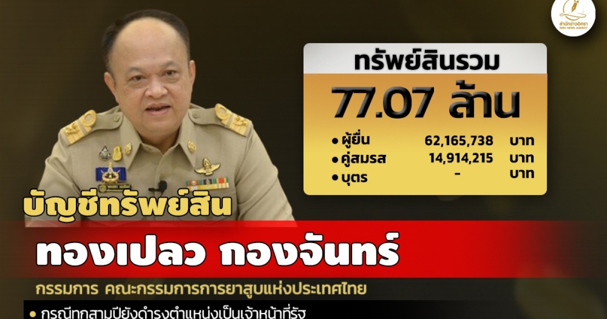77 ล้าน ทรัพย์สิน 'ทองเปลว กองจันทร์' กก.การยาสูบแห่งประเทศไทย รายได้ 22 ล./ปี