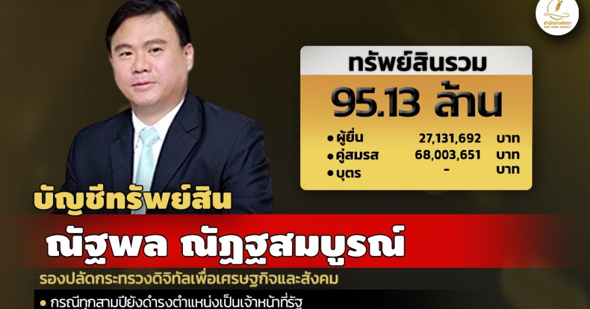 95 ล้าน! ทรัพย์สิน 'ณัฐพล ณัฏฐสมบูรณ์' รองปลัดกระทรวงดีอีเอส รายได้ 3.2 ล./ปี
