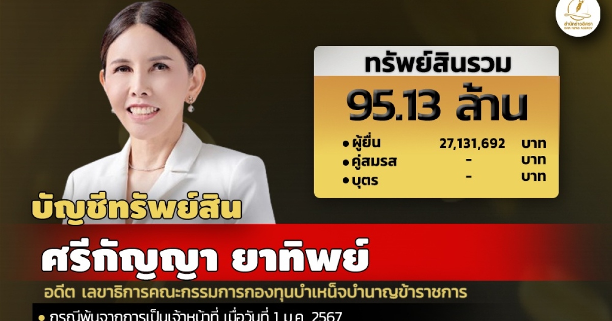 39 ล้าน ทรัพย์สิน 'ศรีกัญญา ยาทิพย์' อดีต เลขาธิการ กบข. รายได้ 12 ล./ปี