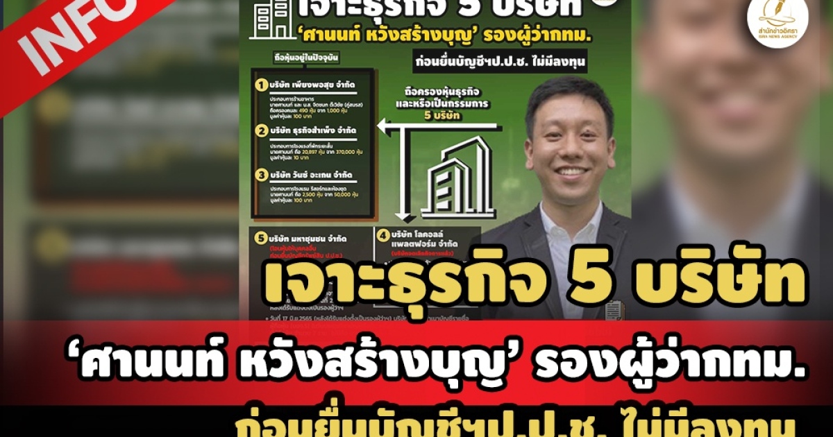 - ‘ศานนท์ หวังสร้างบุญ’ รองผู้ว่าฯ กทม. ถือหุ้น ทำธุรกิจ 3 บริษัท (1)