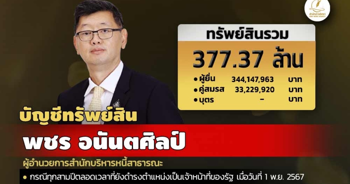 377 ล้าน! 'พชร อนันตศิลป์' ผอ.สำนักบริหารหนี้สาธารณะ ที่ดิน 204 ล. รายได้ 9.6 ล./ปี