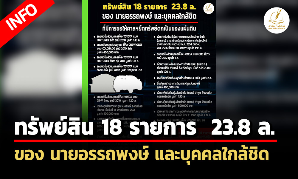 คดีกล่าวหา นายอรรถพงษ์ แซ่แต้ เมื่อครั้งดำรงตำแหน่งนายกเทศมนตรีตำบลแม่ตืน อำเภอลี้ จังหวัดลำพูน ร่ำรวยผิดปกติ ทรัพย์สินจำนวน 18 รายการ รวมมูลค่า 23.8 ล้านบาท ของ นายอรรถพงษ์ และบุคคลใกล้ชิด มีการขอให้ศาลฯยึดทรัพย์ตกเป็นของแผ่นดิน สำนักข่าวอิศรา จึงนำข้อมูล มารวบรวมนำเสนอผ่านภาพอินโฟกราฟิก ดังนี้