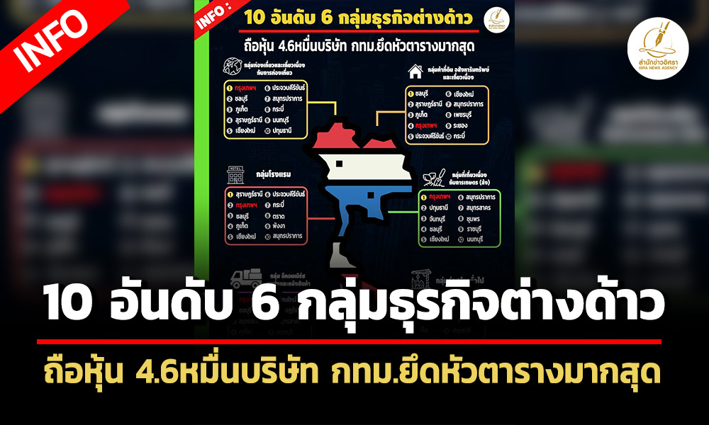 สำนักข่าวอิศรา รายงานข่าวเชิงลึกเกี่ยวกับการทำธุรกิจของคนต่างด้าวมาอย่างต่อเนื่อง พาไปเจาะไส้ใน 6 กลุ่มธุรกิจ ที่เป็นบริษัทที่มีผู้ถือหุ้นต่างชาติ 49 % มากที่สุด 10 อันดับแรก สำนักข่าวอิศรา จึงนำข้อมูล มารวบรวมนำเสนอผ่านภาพอินโฟกราฟิก ดังนี้