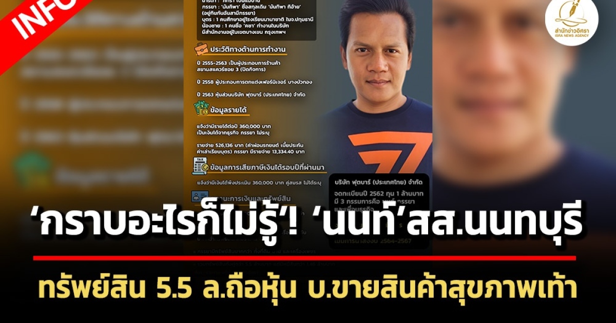 เจ้าของวลี ‘กราบอะไรก็ไม่รู้’! ขุดปูม ‘นนท์ ไพศาลลิ้มเจริญกิจ’ สส.นนทบุรี พรรคประชาชน ผู้อภิปรายตัดงบฯนำพระสงฆ์ไปสักการะสังเวชนียสถานในอินเดีย เนปาล ก่อนโพสต์‘ขออภัย’ พลั้งพลาด พบแจ้ง ทรัพย์สิน 5.5 ล้าน ปิดร้านในสยามสแควร์ เปิด บ.ขายสินค้าดูแลสุขภาพเท้า อ.บางบัวทอง ไม่ส่งงบการเงิน 3 ปี สำนักข่าวอิศรา จึงรวบรวมมานำเสนอผ่านภาพอินโฟกราฟิก ดังนี้