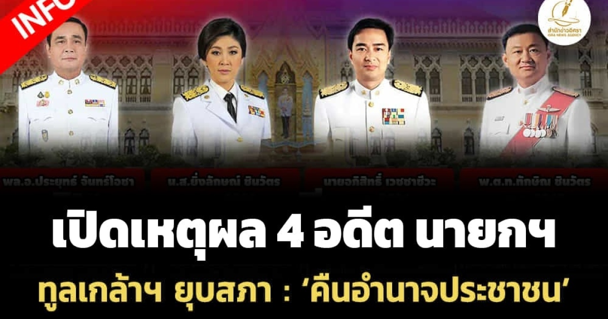 สืบเนื่องจากกรณีนายภูมิธรรม เวชยชัย รองนายกรัฐมนตรีและรัฐมนตรีว่าการกระทรวงมหาดไทย ผู้ปฏิบัติหน้าที่แทนนายกรัฐมนตรี ให้สัมภาษณ์ว่า ได้กราบบังคมทูลฯ ร่างพระราชกฤษฎีกา (พ.ร.ฎ.) ยุบสภา เมื่อวันที่ 2 กันยายน 2568 พร้อมทั้งรายงานสถานการณ์การเมืองในปัจจุบัน ประกอบเพื่อคืนอำนาจประชาชน ขั้นตอนหลังจากนี้เป็นพระราชอำนาจตามรัฐธรรมนูญ มาตรา 103 พระมหากษัตริย์ทรงไว้ซึ่งพระราชอำนาจที่จะยุบสภาฯ เพื่อให้มีการเลือกตั้งสมาชิกสภาผู้แทนราษฎรใหม่เป็นการเลือกตั้งทั่วไป สำนักข่าวอิศรา รวบรวมพ.ร.ฎ. ยุบสภาฯ ของนายกรัฐมนตรี 4 ราย ที่ได้กราบบังคมทูลฯ ให้ยุบสภาฯเพื่อเลือกตั้งสส.ใหม่ ดังนี้