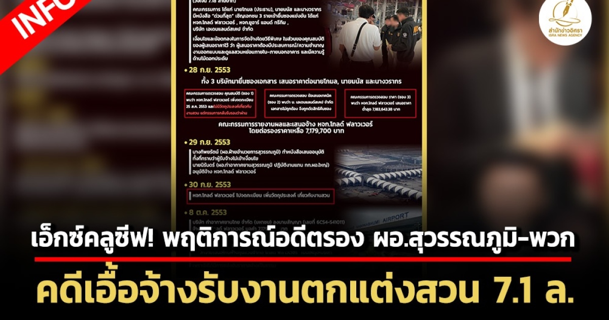 จากกรณีปรากฏข่าวเจ้าหน้าที่สำนักงานคณะกรรมการป้องกันและปราบปรามการทุจริตแห่งชาติ (ป.ป.ช.) ร่วมกับเจ้าหน้าที่ตำรวจกองกำกับการสืบสวนปราบปรามกองบังคับการตรวจคนเข้าเมือง 2 ดำเนินการจับกุมตัวนายมนัส (ขอสงวนนามสกุล) ซึ่งเป็นผลสืบเนื่องจากเมื่อครั้งนายมนัส ดำรงตำแหน่งผู้อำนวยการส่วนเครื่องกล (ระดับ 8) ฝ่ายไฟฟ้าและเครื่องกลท่าอากาศยานสุวรรณภูมิ ได้รับแต่งตั้งเป็นคณะกรรมการจัดจ้างโดยวิธีพิเศษเพื่อดำเนินการหาผู้รับจ้างงานประดับตกแต่งและดูแลไม้ประดับภายในพื้นที่อาคารเทียบเครื่องบิน C, E, F, G ชั้น 4 ท่าอากาศยานสุวรรณภูมิ วงเงิน 7,189,105.80 บาท แต่กลับเอื้ออำนวยให้นิติบุคคลที่ไม่มีคุณสมบัติได้รับการคัดเลือก ส่งผลให้บริษัทท่าอากาศยานไทย จำกัด (มหาชน) เสียประโยชน์จากการแข่งขันราคาอย่างเป็นธรรม พฤติการณ์การกระทำความผิดในคดีนี้ ของ นายมนัส มีรายละเอียดดังต่อไปนี้