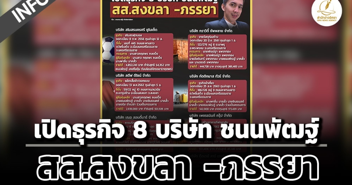 ชนนพัฒฐ์ นาคสั้ว สส. สงขลา พรรคพลังประชารัฐ ปัจจุบันสังกัดพรรคกล้าธรรม ของผู้กองธรรมนัส พรหมเผ่า ชื่อของเขาถูกกล่าวขานทางการเมืองและทางธุรกิจเป็นอย่างมาก สำนักข่าวอิศราตรวจสอบพบว่า นายชนนพัฒฐ์ และ นางสาวกฤตพร คงเคว็จ ภรรยา เป็นกรรมการและหรือถือหุ้นอย่างน้อย 8 บริษัท โดยเสนอในรูปแบบอินโฟกราฟิกดังนี้