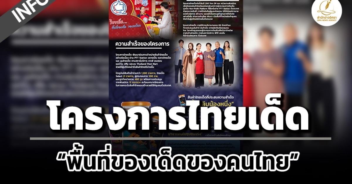 โครงการไทยเด็ดก่อตั้งในปี 2561 โดย OR และ หน่วยงานพันธมิตร เพื่อคัดสรรสินค้าไทยดีและสินค้าที่มีเอกลักษณ์จากผู้ประกอบการ ท้องถิ่น มุ่งเป็น Non-Profit Platform ที่ใช้เครือข่าย PTT Station ทั่วประเทศช่วยกระจายสินค้า รายได้กลับคืนสู่ชุมชนโดยตรง ไม่ได้เน้นแค่การขาย แต่สร้างโอกาส สร้างงาน และผลักดันเศรษฐกิจ ฐานรากให้เติบโตอย่างยั่งยืน ผ่านการคัดเลือก พัฒนา เปิดพื้นที่ จำหน่ายสินค้าชุมชนให้เข้าถึงผู้บริโภคได้ง่ายขึ้นทั่วประเทศ
