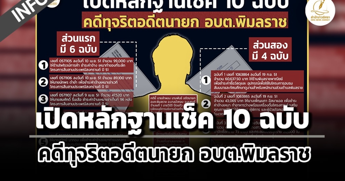 สำนักข่าวอิศรา นำรายละเอียดบ้างส่วนในคำพิพากษาศาลอุทธรณ์ที่พิพากษาแก้คำพิพากษาศาลอาญาคดีทุจริตและประพฤติมิชอบภาค 1 ให้ลงโทษ จำคุก 30 ปี นายลำพอง นามพันธ์ ไม่รอการลงโทษ ต่อมา ได้ตรวจสอบหลักฐานการเบิกเงินค่าใช้จ่ายในโครงการต่าง ๆ 10 รายการ พบว่า มีการแก้ไขชื่อผู้รับเงินตามเช็คเป็นชื่อนาง ข. แล้ว ซึ่งจำเลยทั้งสามและนาย ศ. ลงลายมือชื่อกำกับการแก้ไขดังกล่าวด้วย โดยในเช็คแต่ละฉบับจะมีผู้มีอำนาจลงลายมือชื่อฉบับละ 3 คน ดังนี้