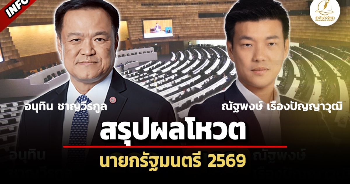 สภาฯ ลงมติเห็นชอบเกินครึ่ง 293 เสียง ต่อ 119 เสียง ให้ 'อนุทิน' ดำรงตำแหน่งนายกฯ สมัยที่สอง เปิดใจ พร้อมทำงานกับ สส.ทุกพรรค พร้อมรับคำวิจารณ์ - 'รังสิมันต์-อภิสิทธิ์' อภิปราย คุณสมบัติไม่เหมาะสม ชี้ ปม 'ฮั้วเลือกสว.'