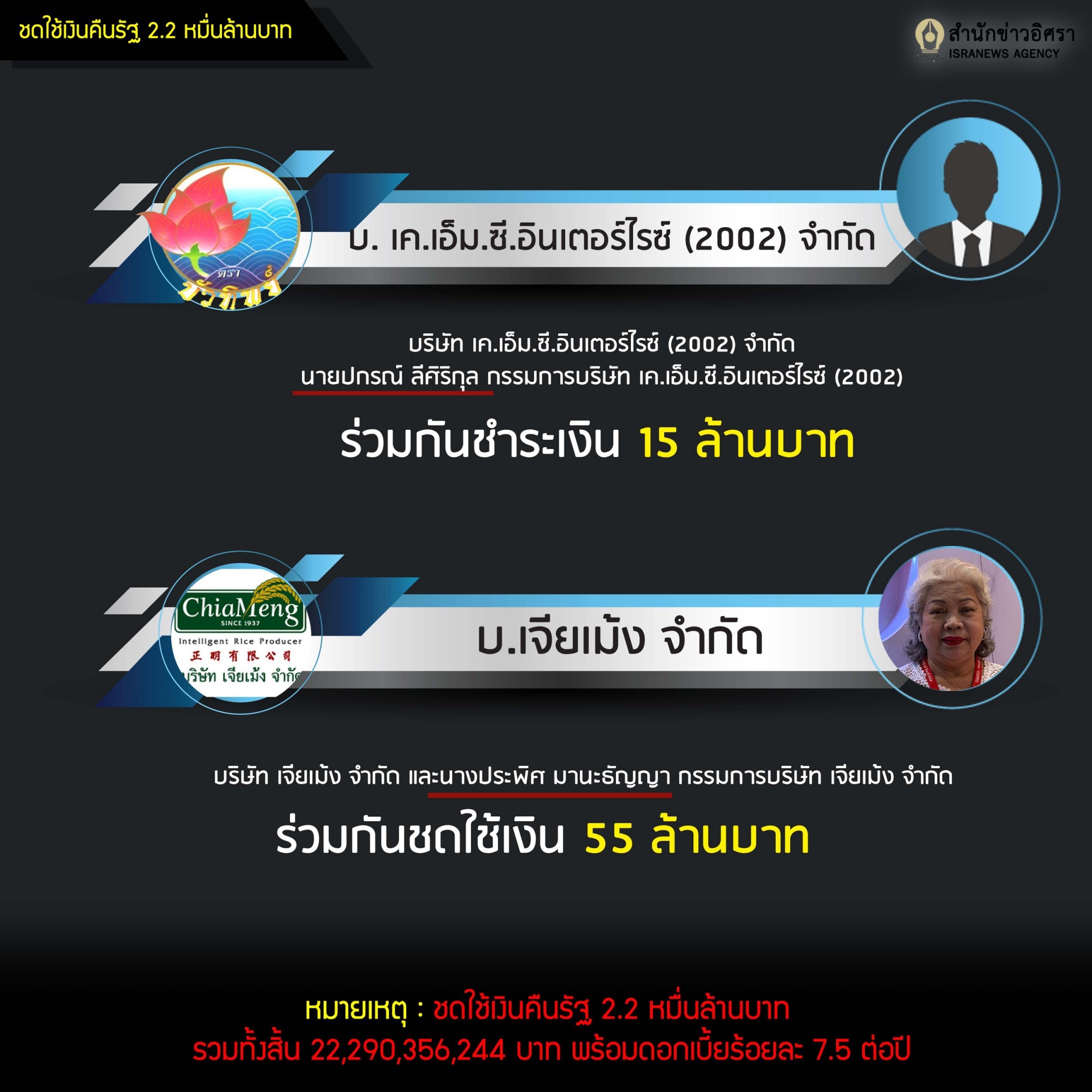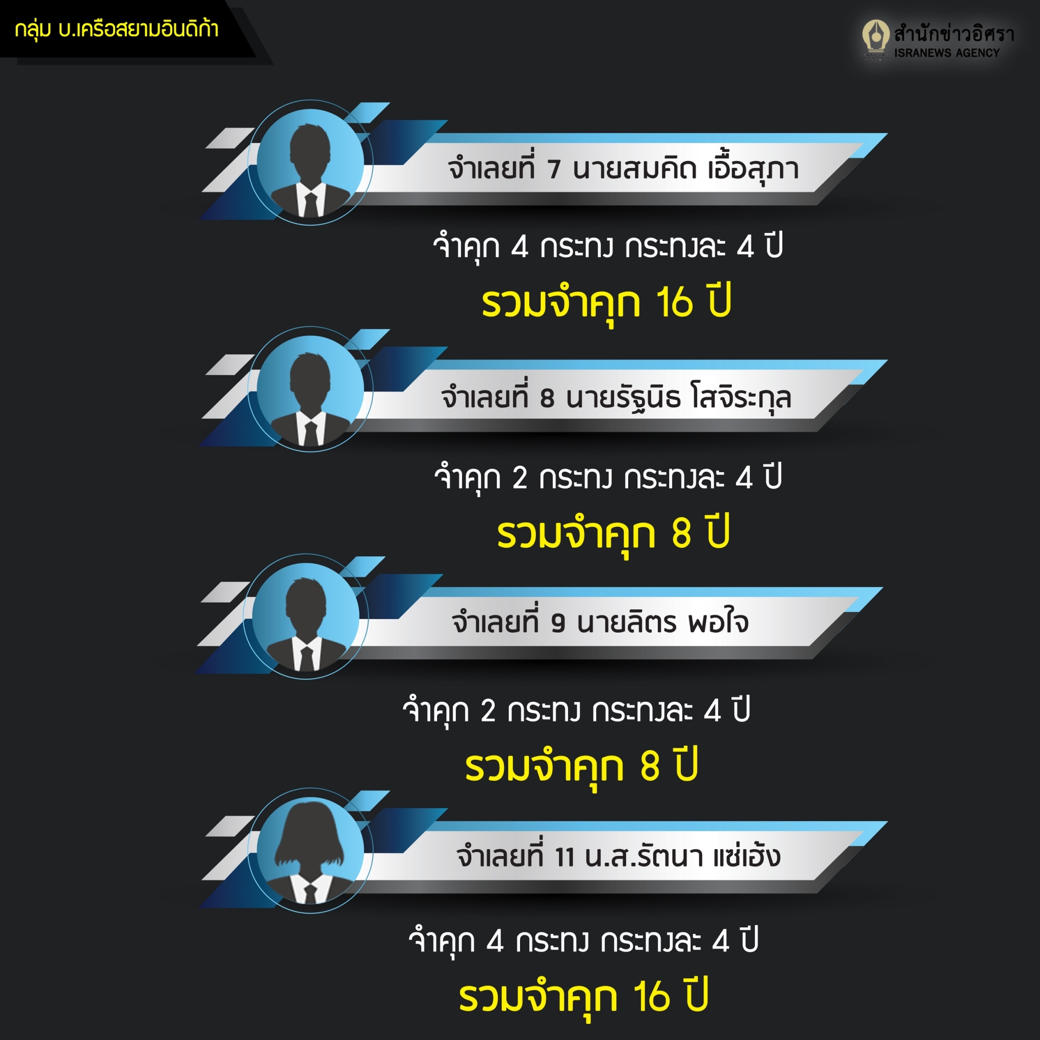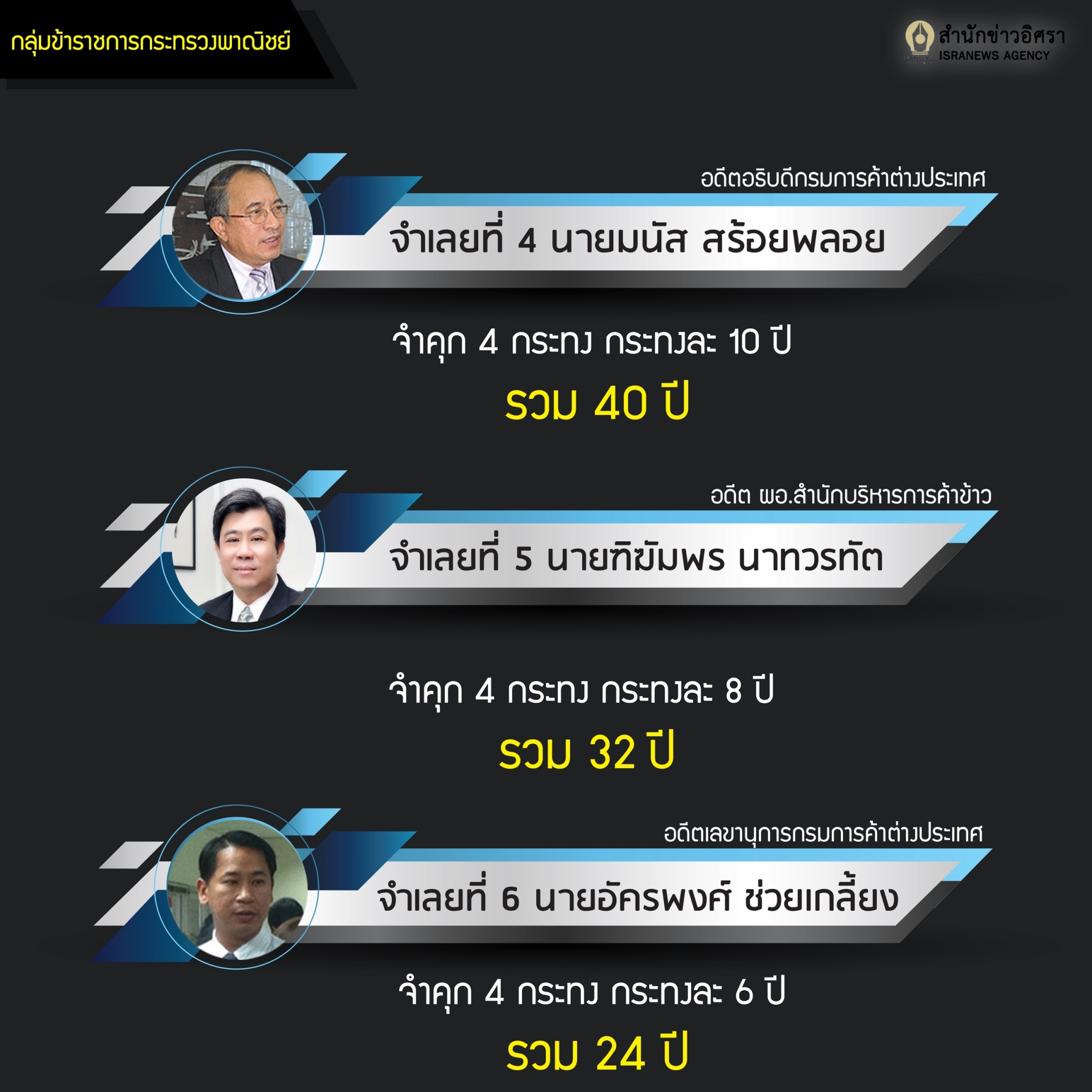 INFOGRAPHIC : จำแนกจำเลย-โทษเรียงคน คดีระบายข้าวจีทูจีโดยทุจริต จำคุกจำเลย 20 ราย สั่งเอกชนปรับ-ชดใช้ค่าเสียหาย 8 ราย