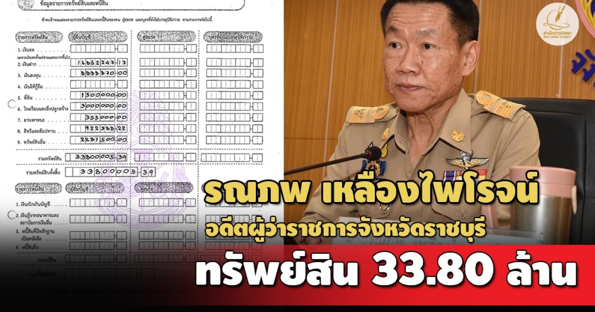 ป.ป.ช. เปิดบัญชีทรัพย์สิน 'รณภพ เหลืองไพโรจน์' อดีตผู้ว่าราชการจังหวัดราชบุรี มีทรัพย์สิน 33 ล้าน ไร้หนี้สิน สะสมอาวุธปืน 23 กระบอก รายได้ 1.4 ล./ปี
