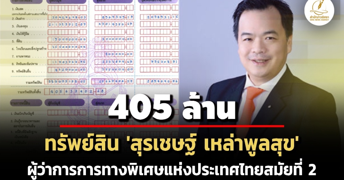ป.ป.ช.เปิดทรัพย์สินผู้ดำรงตำแหน่งระดับสูง 'สุรเชษฐ์ เหล่าพูลสุข' ผู้ว่าการการทางพิเศษแห่งประเทศไทยสมัยที่ 2 ทรัพย์สิน 405 ล. เงินลงทุน 211 ล. รายได้ 166 ล./ปี