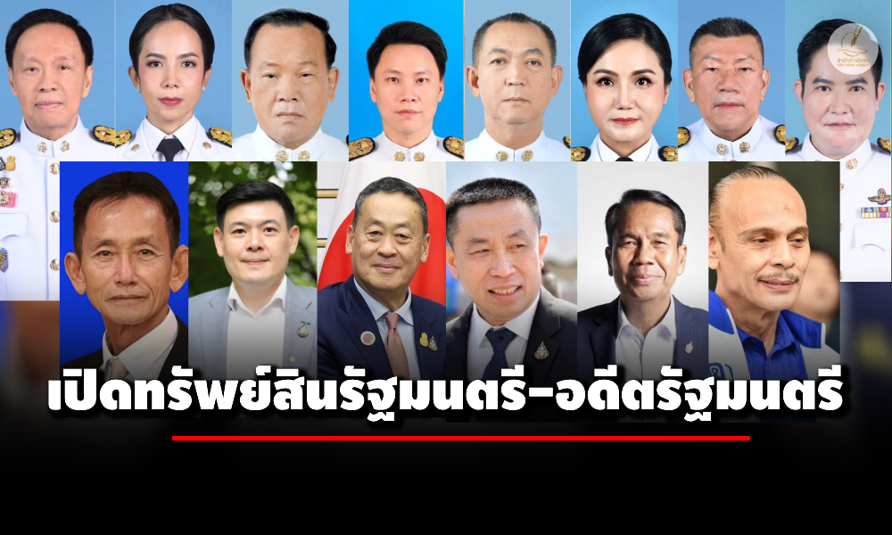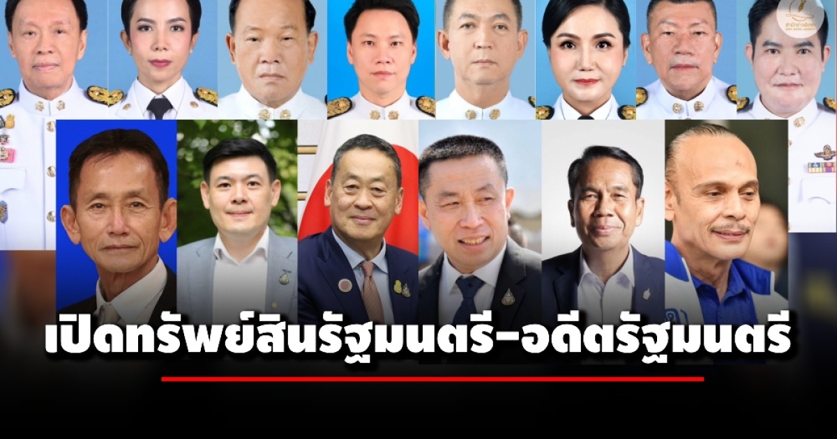 ป.ป.ช. เปิดทรัพย์สิน 14 รัฐมนตรี-อดีตรัฐมนตรี 'เศรษฐา' มากสุด 985 ล.-'พล.ต.อ.พัชรวาท' 292 ล.-'อิทธิ' 225 ล.-'ชาดา' 141 ล.-'ศักดิ์สยาม' 111 ล.-'นฤมล' 110 ล.-'เฉลิมชัย' 101 ล.-'เกรียง' 103 ล.-'พิมพ์ภัทรา' 76 ล.-'จักรพงษ์' 56 ล.-'อัครา' 34 ล.-'สันติ' 18 ล.-'สุทิน' 16 ล.-'อรรถกร' 10 ล.